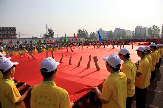 4月29日上午,春风和煦,阳光明媚,校大操场上彩旗飘扬,我校2015年春季田径运动会盛大开幕。在校的校党、政领导,校运会组委会成员出席了开幕式,开幕式由副校长、大会组委会主任李宏全主持。