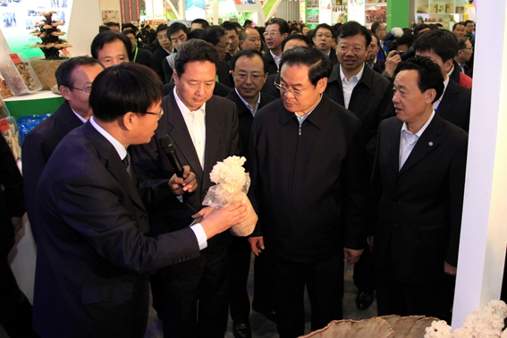 开幕式后,王儒林、李小鹏等省领导就来到了位于主席台左侧的山西农业大学展厅,听取我校领导和专家教授关于食用菌栽培、晋汾白猪养殖、羊驼等新产品、新技术的介绍。省领导关心地询问,“通过栽培食用菌,能为农民增收多少?”“晋汾白猪的肉质好不好?瘦肉率是多少?”并希望我校的专家教授们继续在科技创新和社会服务方面多做贡献。