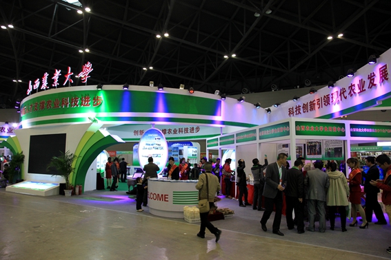 本届农博会上,我校组织参展项目涉及到24个产业、领域,共计272项新成果、新技术。在展区的布置上,通过产业科技创新、社会服务、新农村建设规划、大学生创业等四大板块,运用影像、图片、文字资料的介绍以及实物展示等手段和形式,展示了我校选育的谷子新品种等,猪、牛、羊等的品种选育情况,兽药及饲料,灵芝等食用菌栽培情况,食品加工的系列产品,钙果系列产品,吸引了众多参观者前来观看、问询。